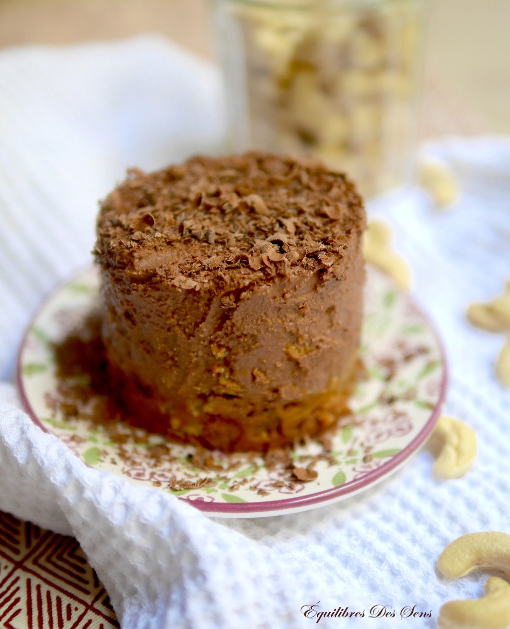 Faites fondre le chocolat et mixez avec les noix de cajou trempées, la purée de sésame, l’huile de coco fondue, le cacao en poudre et le lait de coco.