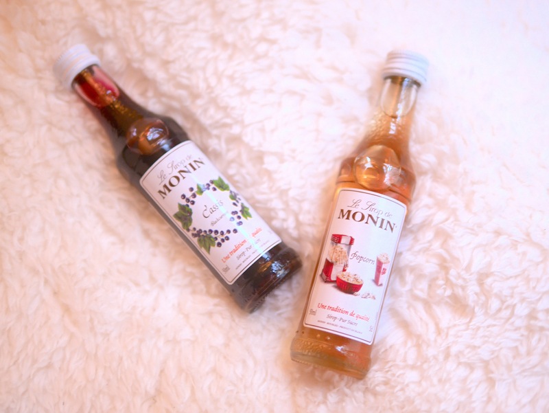 - Deux sirop de la marque Monin au cassis et au pop-corn