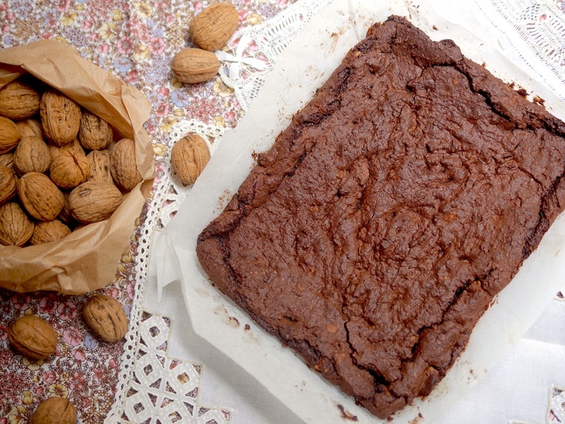 Inspirée et conquise par le brownie à la noix de coco d’Alice du blog Au vert avec Lili et par le brownie aux noix de Julie du blog Jujube en cuisine, j’ai décidé de revisiter à mon tour cette petite merveille vegan et sans gluten en y insérant de la crème de marrons !
